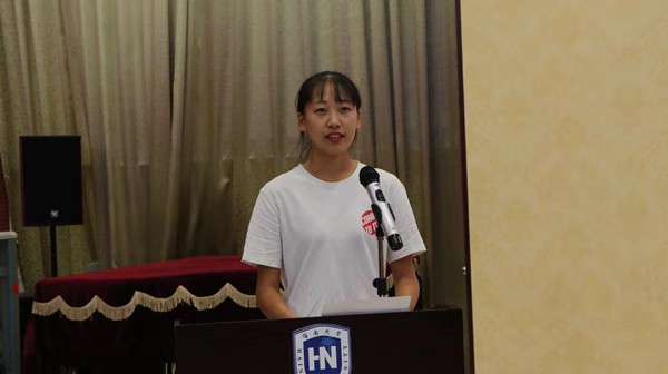 2019级新生吴嘉骐同学代表全体新生发言。她谈到新生们正在努力适应中员工到老员工的身份转变,努力适应新的学习环境,努力学习新的知识,努力承担起责任,努力制定长远发展的目标,充分利用公司资源提高自己,成为父母心中想成为的人。同时,在以后的学习和生活中,作为古天乐代言太阳集团138体育部第一届本科生,应该承担起自己的责任,为以后的学弟学妹们做出榜样。表达了一名新生对老员工活的美好憧憬以及立志成才的信心和决心。