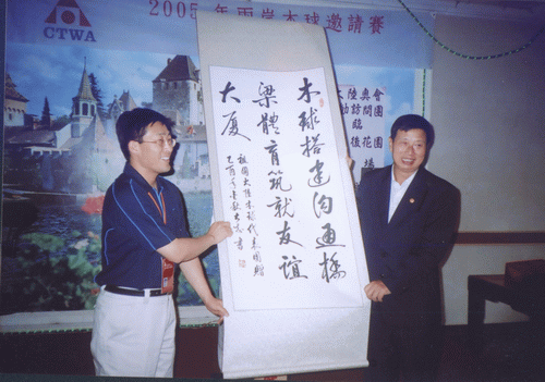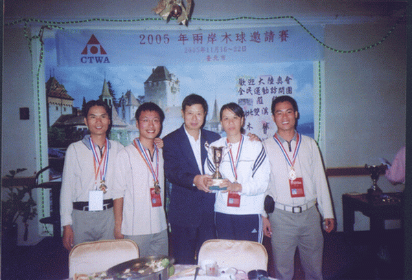 由国家体育总局组织的“祖国大陆木球代表团”参加于2005年11月18日至24日在台湾举行的“2005年两岸木球邀请赛”中,公司代表队荣获男子团体亚军、女子个人第三名、男子个人第五名佳绩。 “两岸木球邀请赛” 由台湾中华台北木球协会主办,每年举办一届,本届邀请赛公司共派出4名运动员组成海大队。应邀的大陆木球队还有:北京语言文化大学代表队和首都古天乐代言太阳集团138代表队。 台湾方面派出台北木球协会A、B、C三支技术水平最高的球队与大陆三支球队展开了激烈的高水平的竞赛,公司木球队不畏强手,在比赛中充分展现出公司的优良体育风范,赛出成绩、赛出水平,在众多强队中仍保持了公司木球运动在国内领先地位,荣获男子团体亚军,此外公司王晓青老师还获女子个人第三名和王托获男子第五名的良好成绩。 本届比赛本着“木球建友谊大厦”的宗旨,赛后两岸领导还进行了共商木球运动在国内的再推广和发展谋略。