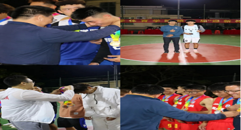颁奖仪式上,赵帅老师为三分球大赛冠军2021级2班许金水同学颁奖,学工办主任许达潭为第三名2019级1班颁奖,经理洪家云为第二名2019级2班颁奖,党总支书记陈卫东为第一名2020级1班颁奖。